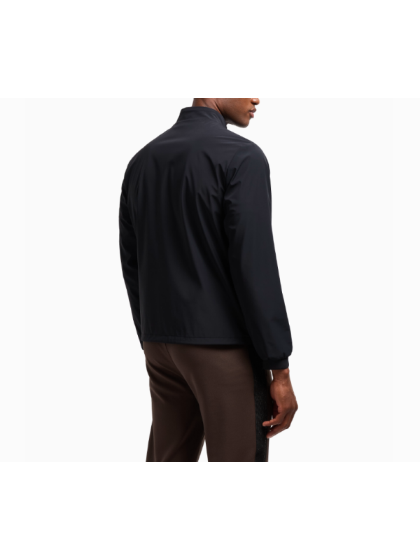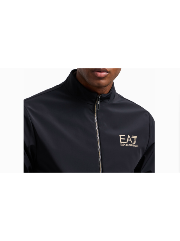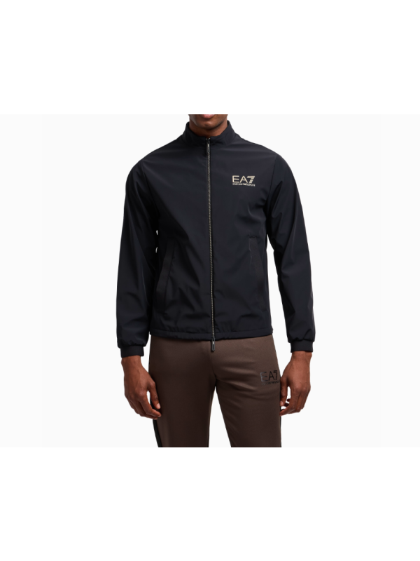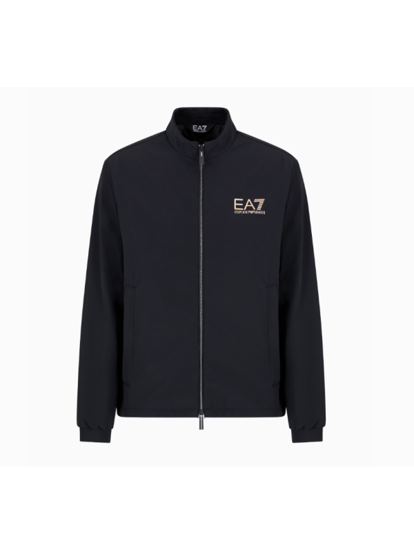 Jakna s patentnim zatvaračem izrađena od rastezljivog najlona, ima patentni zatvarač i dva duboka okomita džepa s patentnim zatvaračem. Stil, prilagođen logotipom EA7 u zlatnoj završnici na prsima, dio je izbora Gold Label, koji sadrži profinjen i elegantan stil: komadi izrađeni od udobnih tkanina i prilagođeni nepogrešivim zlatnim dodirom, za atletski, šik stil.