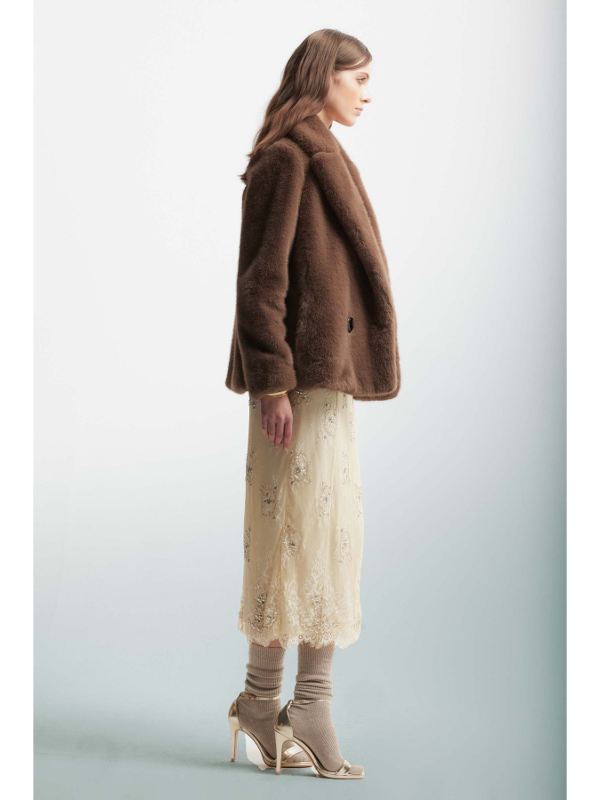 Ženski smeđi kratki KOCCA kaput na kopčanje sa gumbima