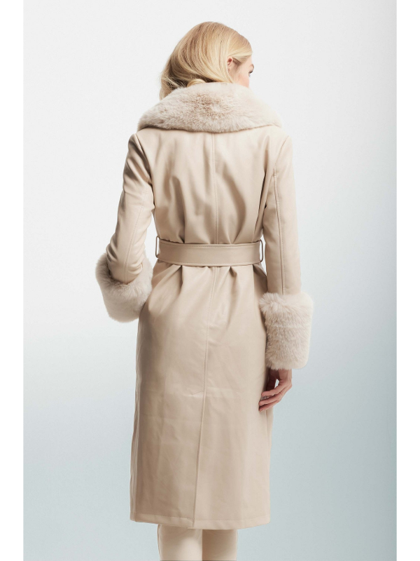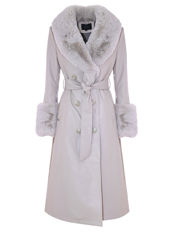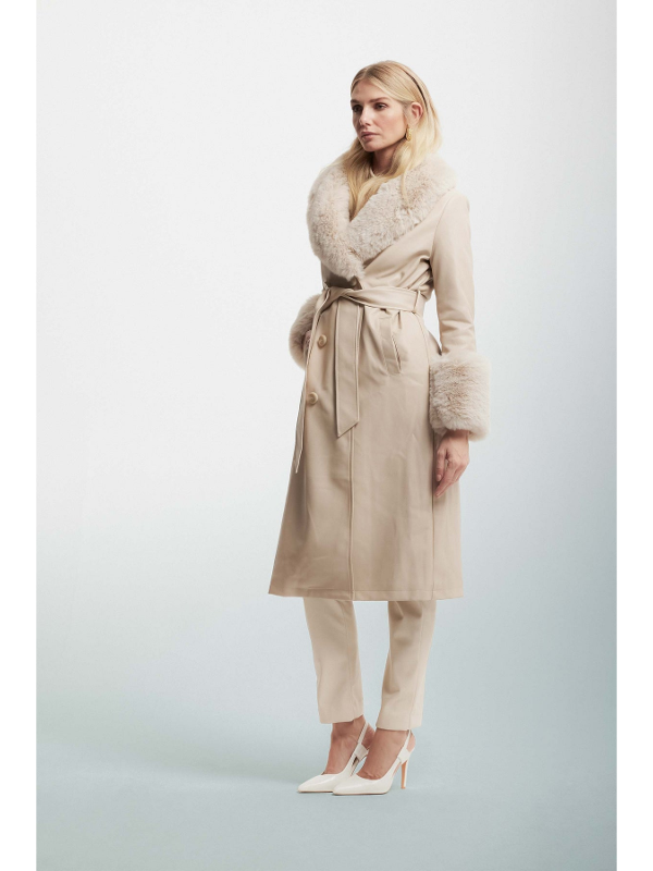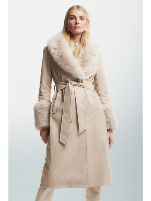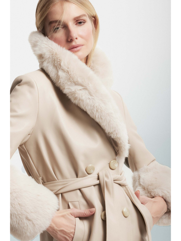 Ženski KOCCA bež kaput na dvoredno kopčanje s džepovima i pripadajućim remenom