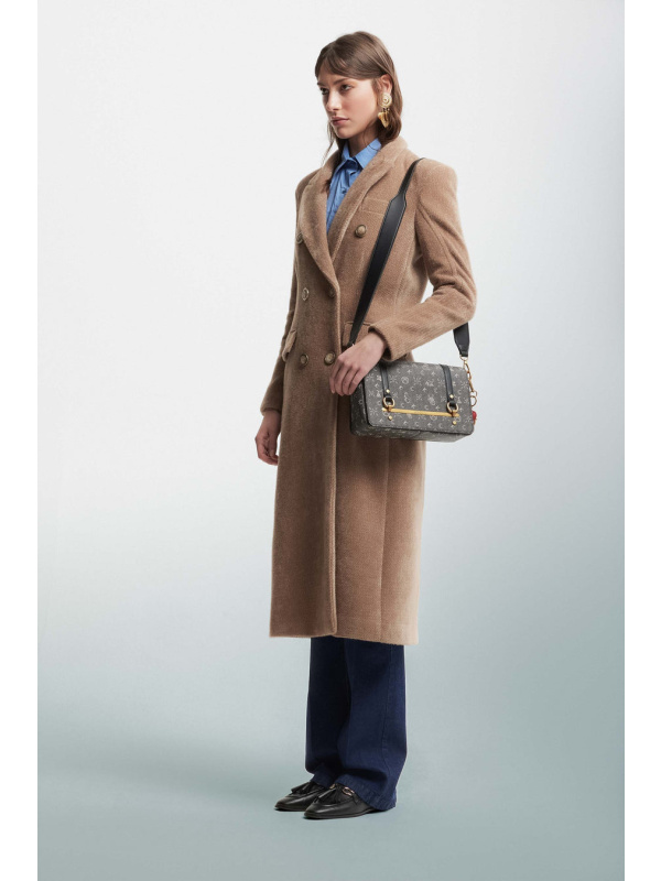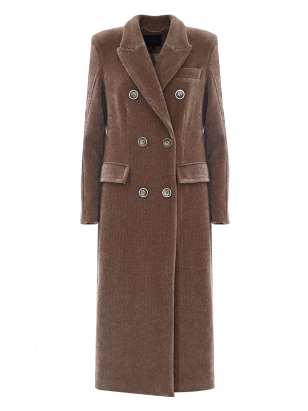 Ženski smeđi Kocca kaput na dvoredno kopčanje u vintage stilu
