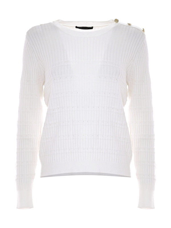 Džemper od mješavine meke viskoze od rebrastog pletiva s otvorenim detaljima, završen ukrasnim gumbima na ramenu.