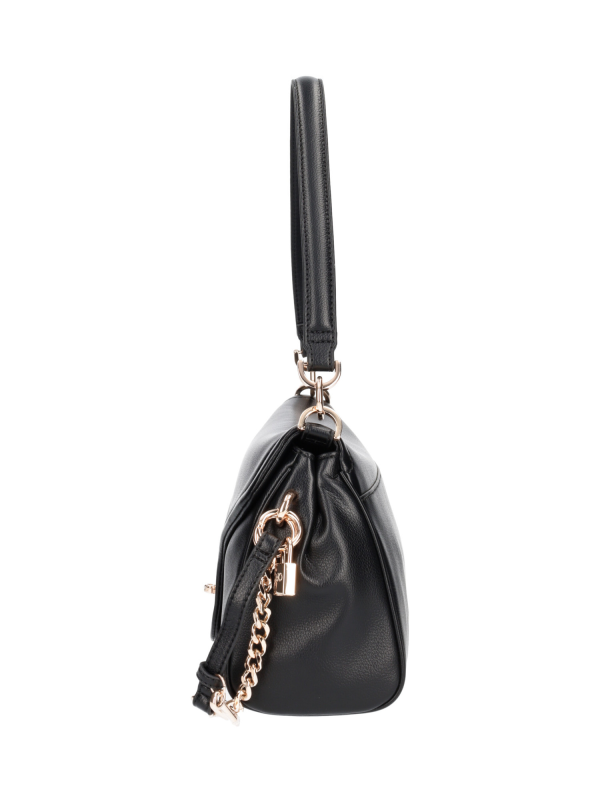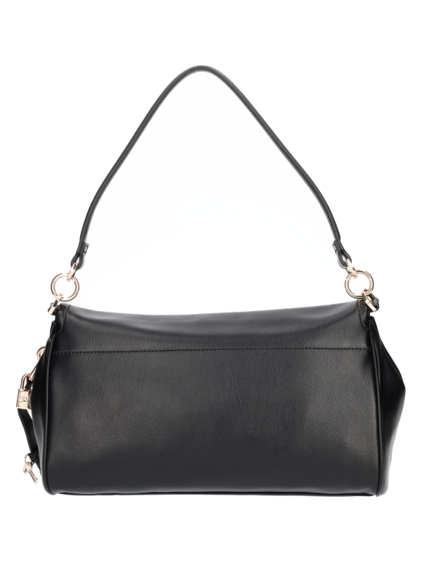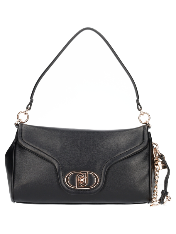 Liu Jo ženska shopper torba od meke crne eko kože sa zlatnim obrubom i dugom ručkom. Zatvaranje na kopču, unutarnji servisni džep i uklonjivi vanjski bočni dodatak.