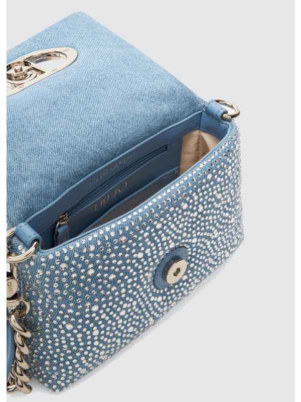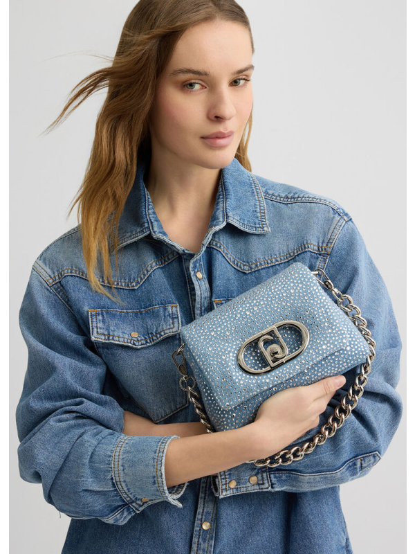 Ženska svijetloplava Liu Jo LaPuffy denim torba s ukrasnim kamenčićima
