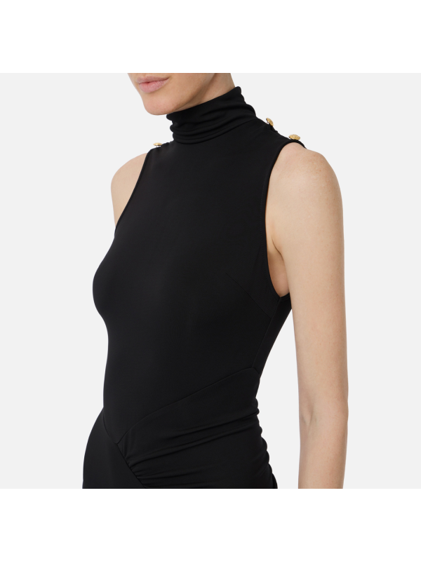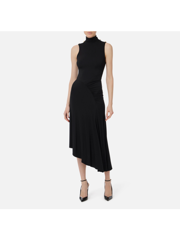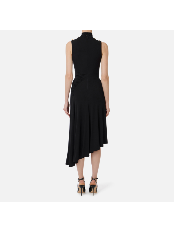 Ženska crna asimetrična Elisabetta Franchi haljina od lepršave tkanine od krep žerseja