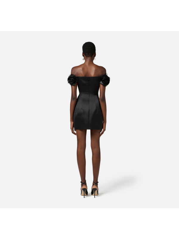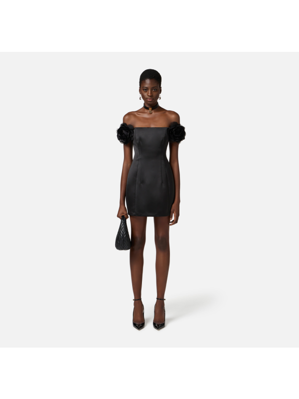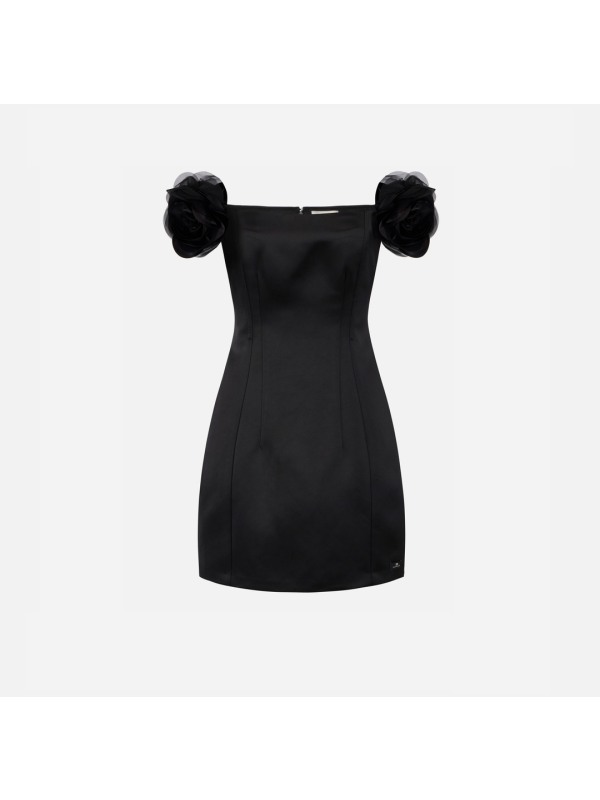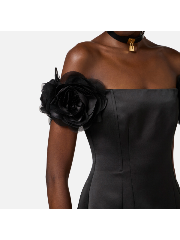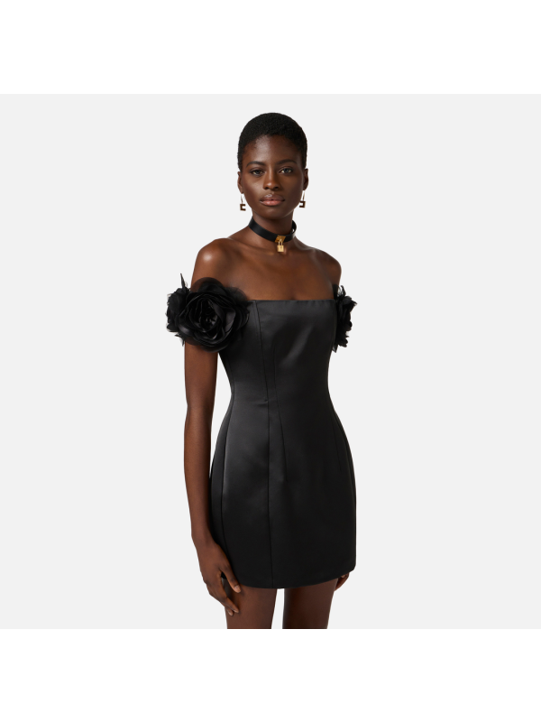 Ženska crna Elisabetta Franchi haljina od duchesse satena s apliciranim cvijetnim dizajnom