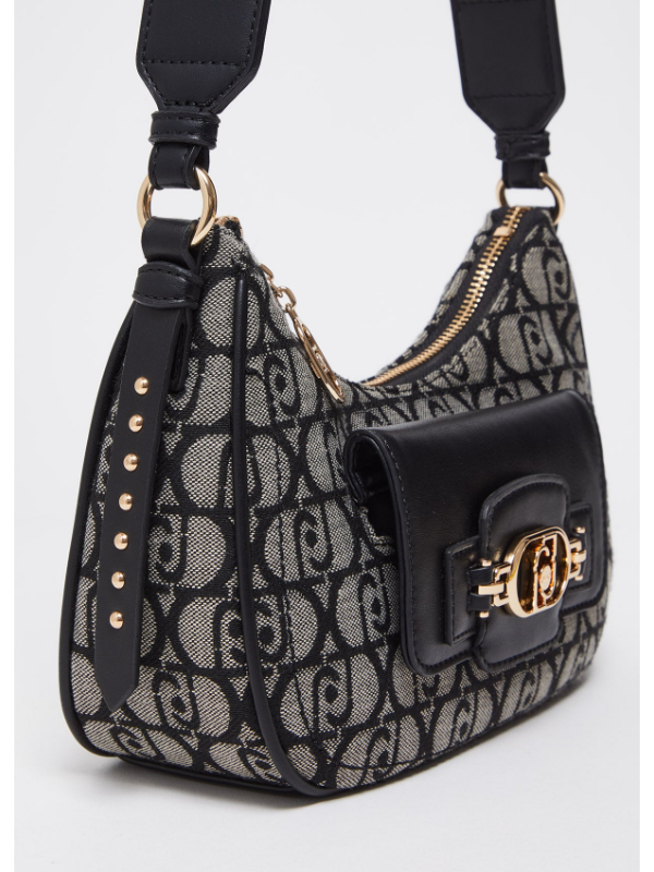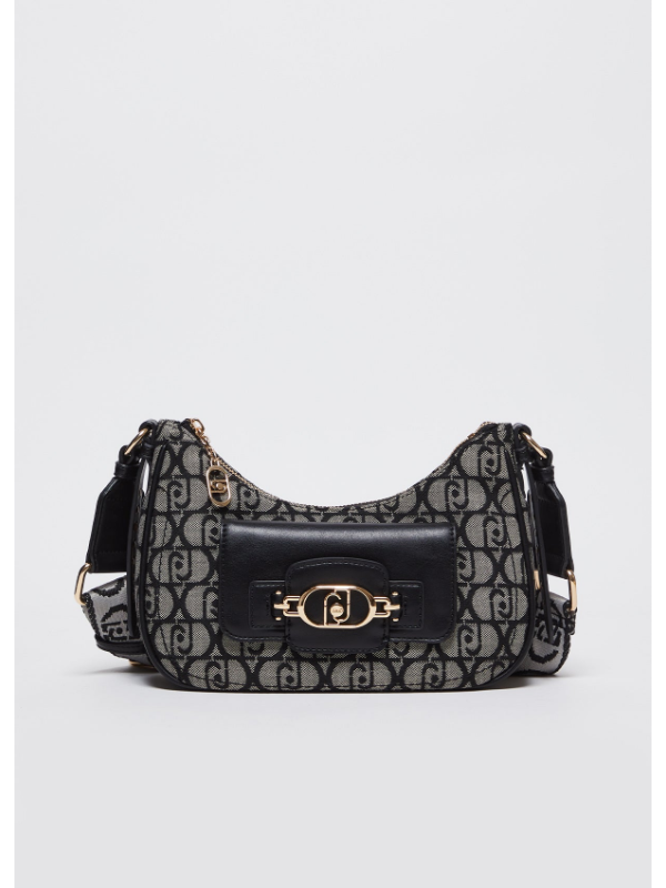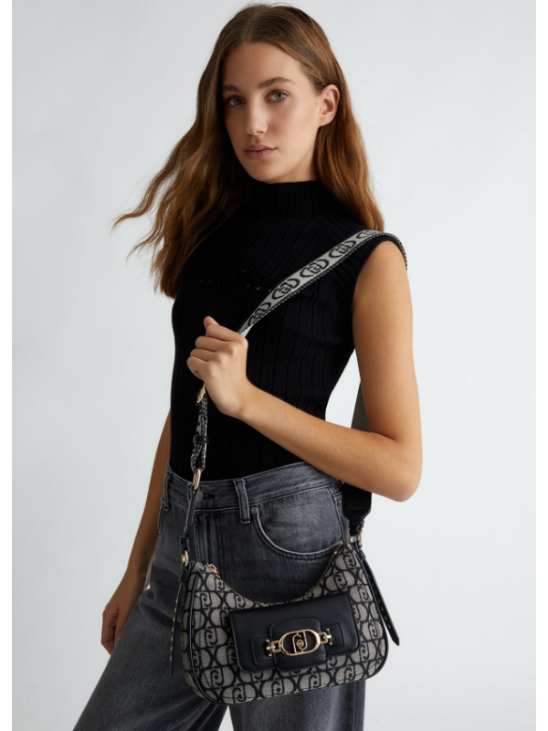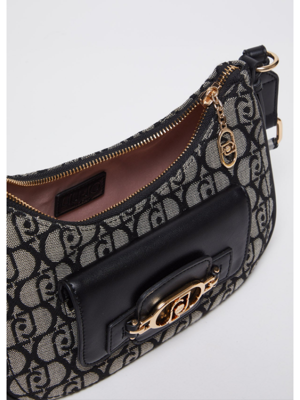 Ženska crna Liu Jo torba za rame s all-over jacquard monogramom