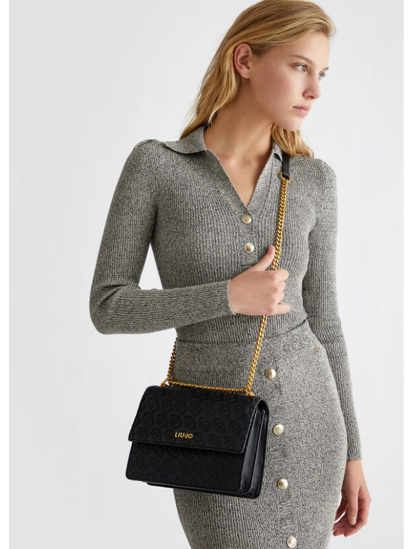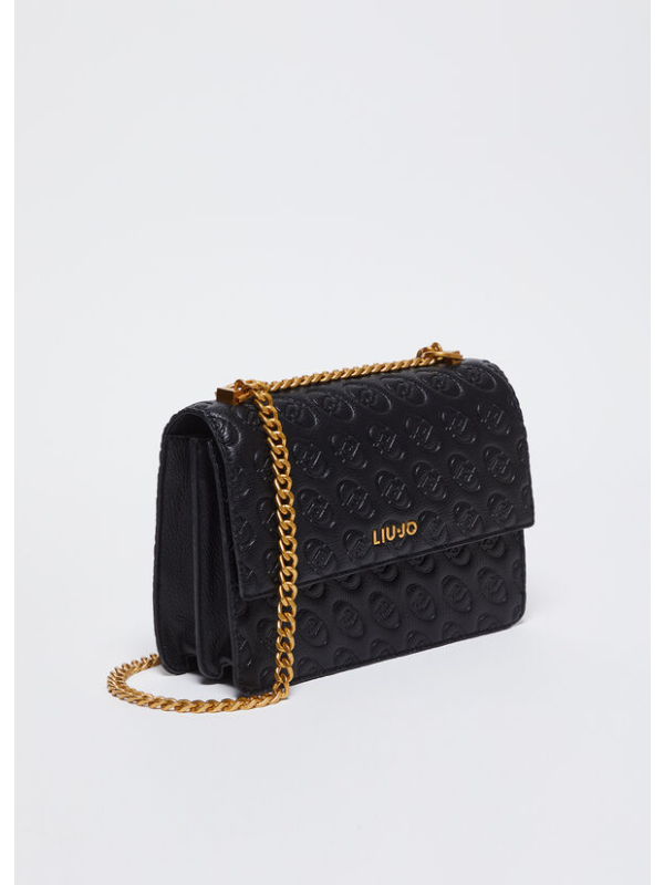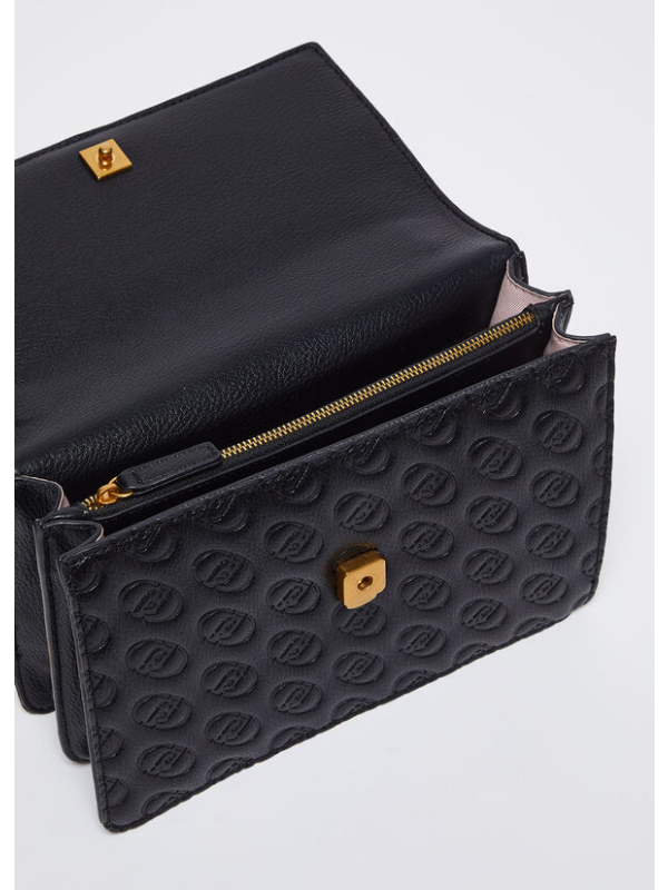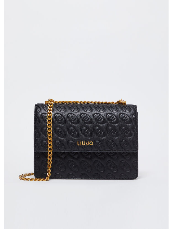Ženska crna Liu Jo torba preko ramena s all-over reljefnim monogramima