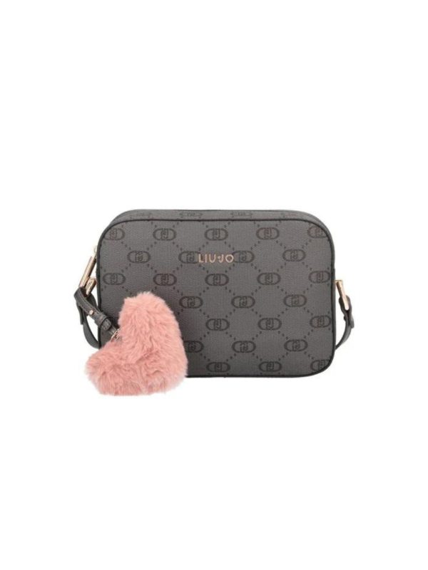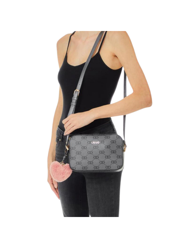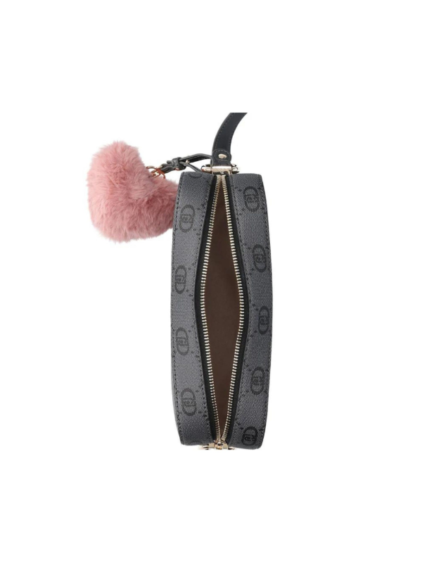 Ženska crna Liu Jo torba s all-over logom i privjeskom u obliku srca