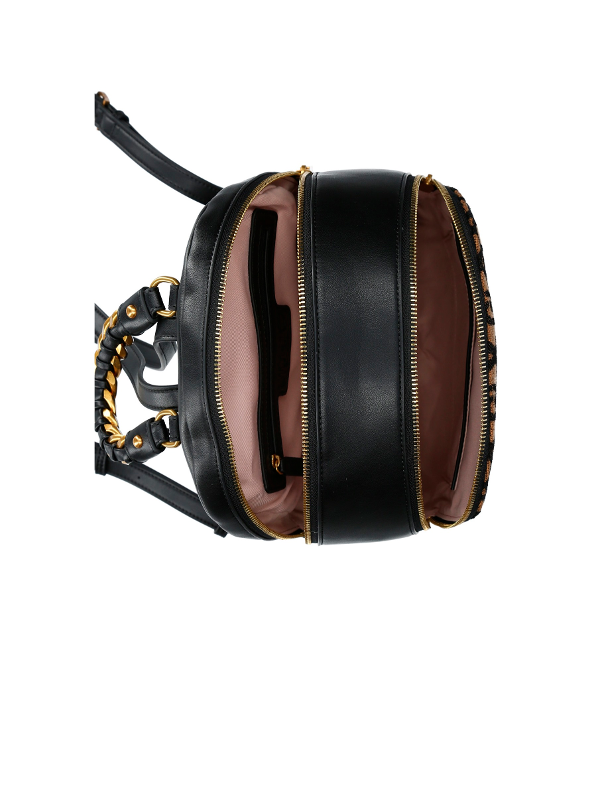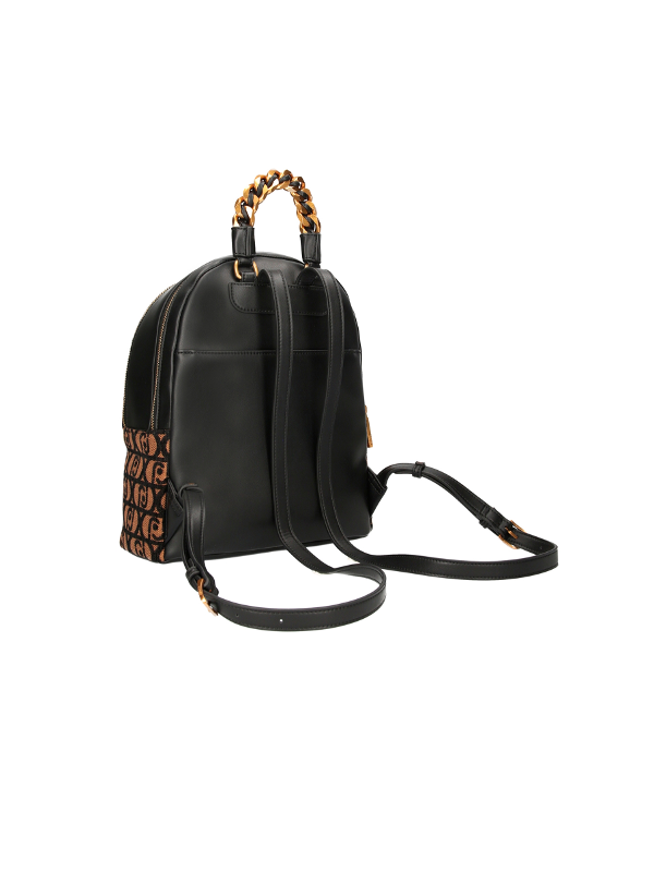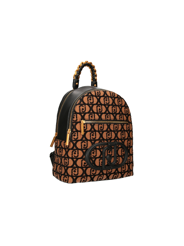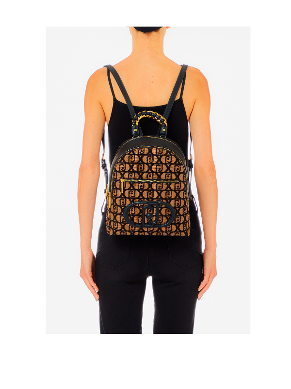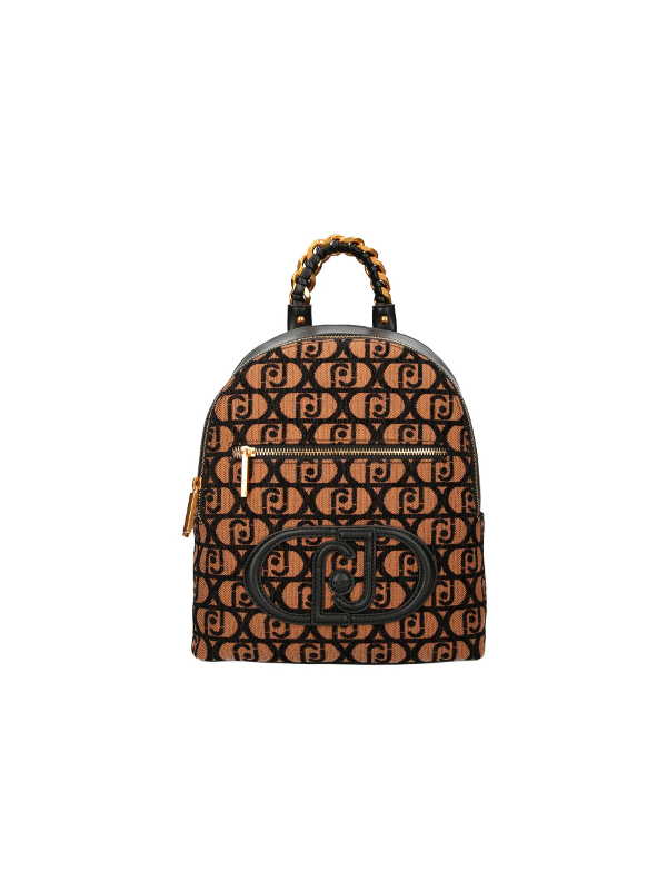 Ženski smeđi Liu Jo ruksak s all-over printom, kontrastnim logotipom i patentnim zatvaračem