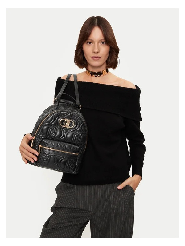 Ženski crni Liu Jo ruksak s all-over reljefnim monogramom