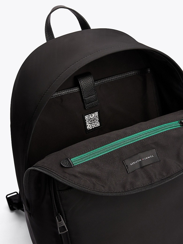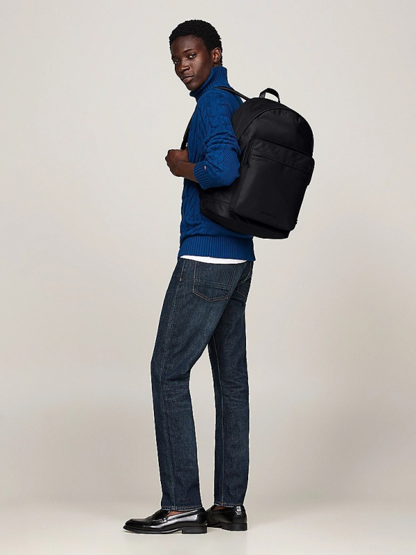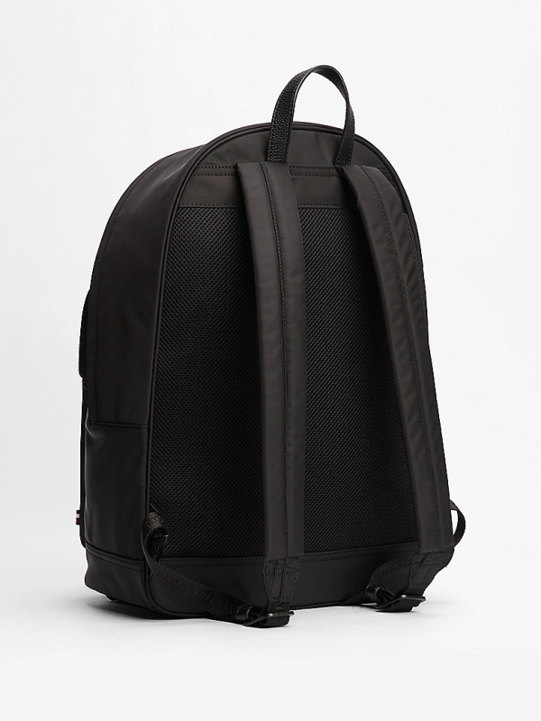 Muški crni Tommy Hilfiger kupolasti ruksak s logotipom s teksturom