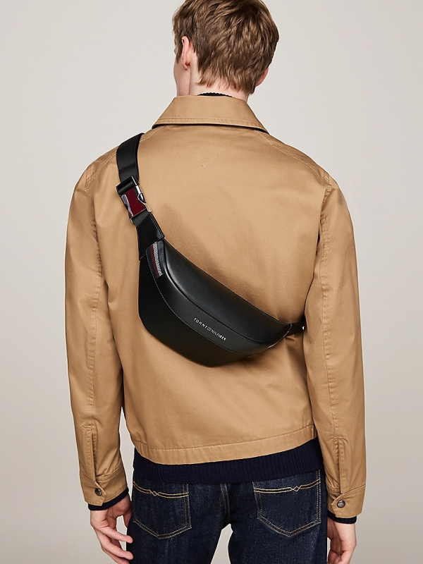 Muška crna Tommy Hilfiger korporativna torba s mješovitom strukturom
