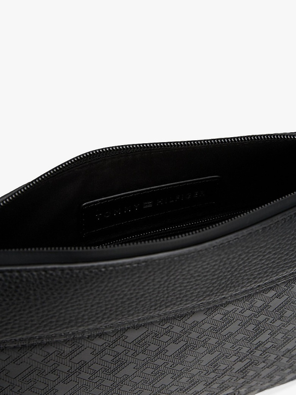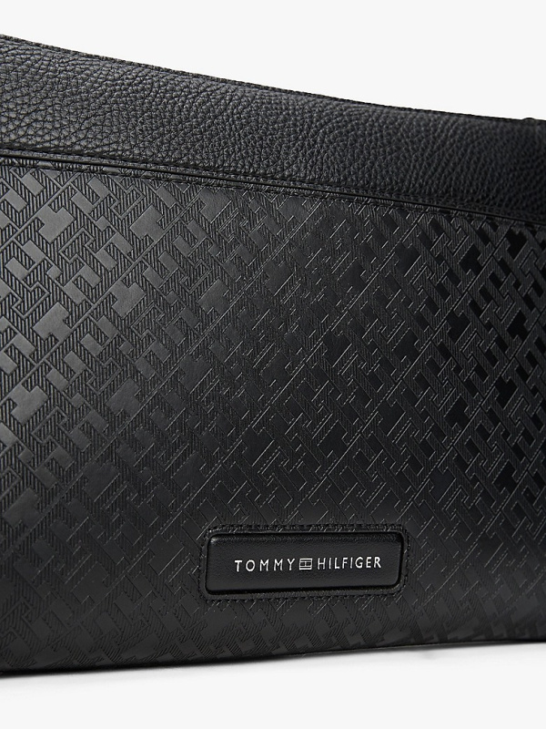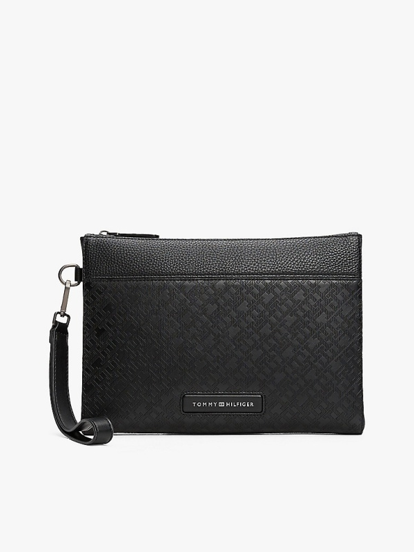 Organizirajte svoje osnovne potrepštine u ovoj TH torbici s monogramom, zajedno s patentnim zatvaračem i odvojivom ručkom za nošenje sa strane.