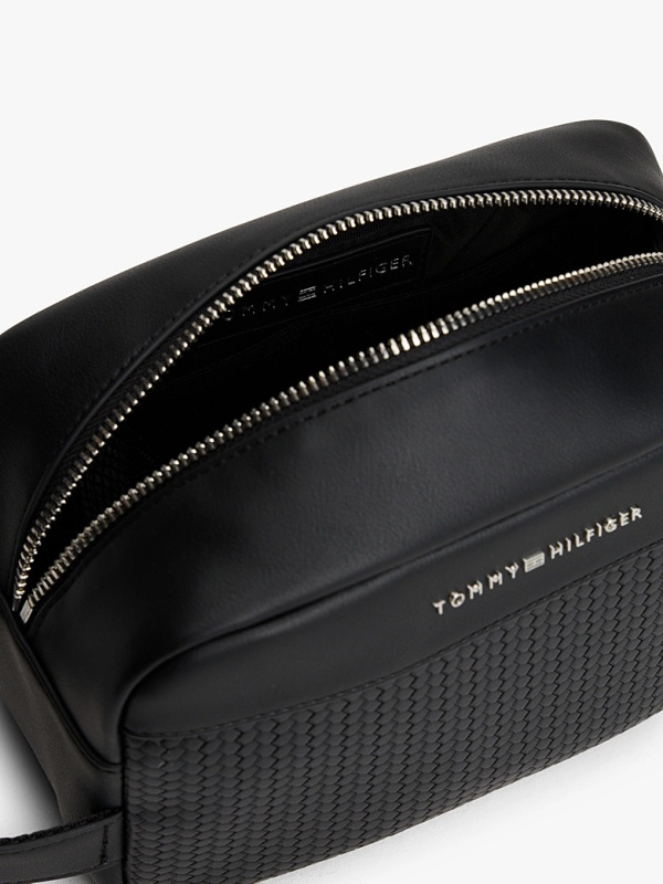 Moderan dodatak za dom ili putovanja, ova torba za pranje rublja ima prednju stranu s tkanom teksturom za profinjen izgled. Glatke