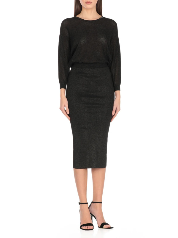 Ženska crna Elisabetta Franchi haljina s perforiranim uzorkom