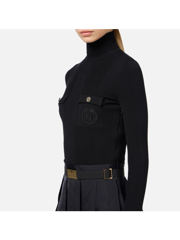 Elisabetta Franchi Haljina od crne viskoze i rebraste svile.