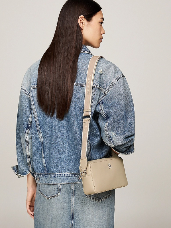 Ova elegantna ležerna torba za fotoaparat spremna je za sve, s diskretnim natpisom na remenu i poliranom pločicom s monogramom TH.