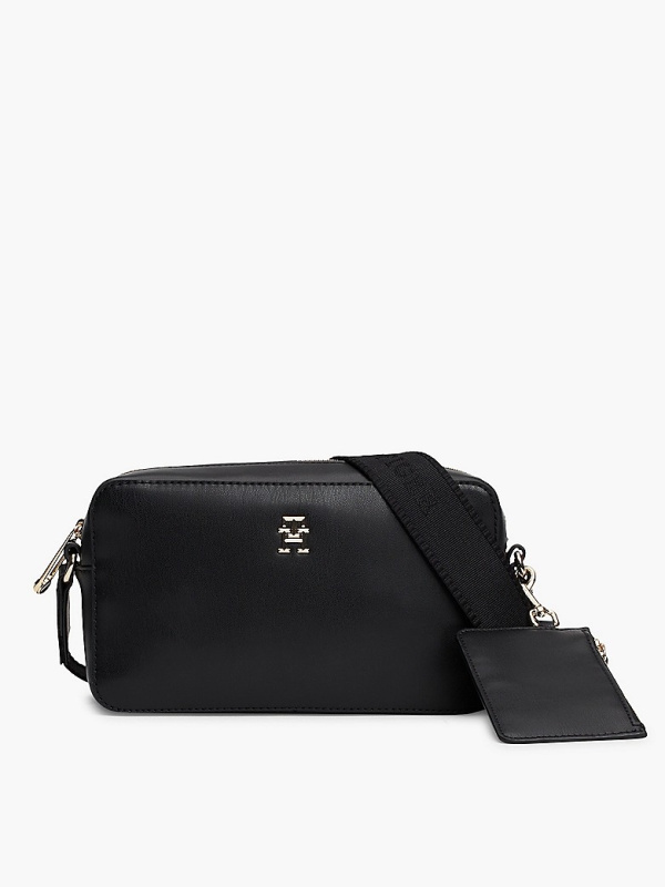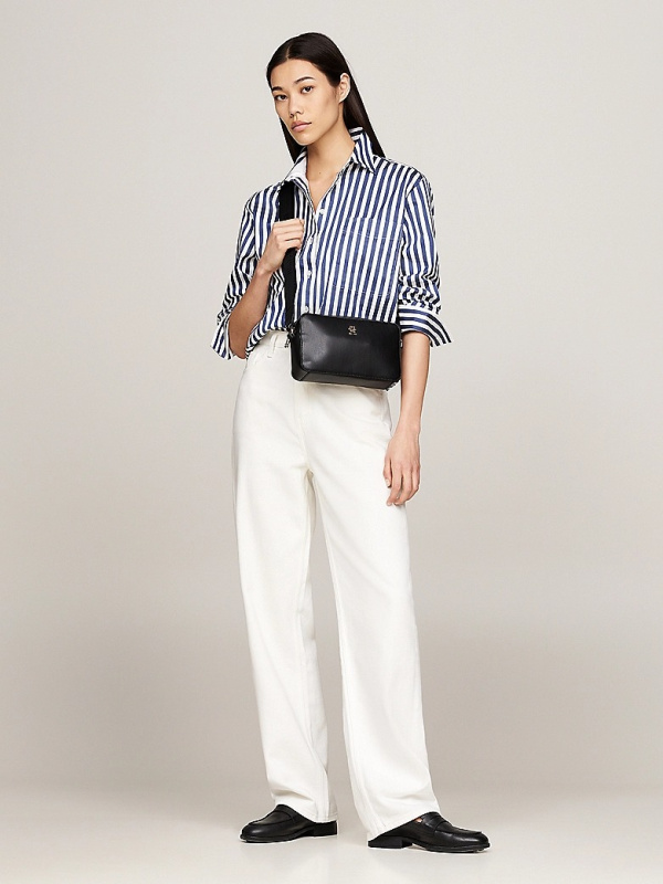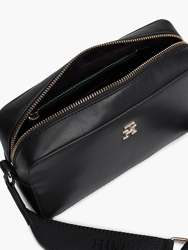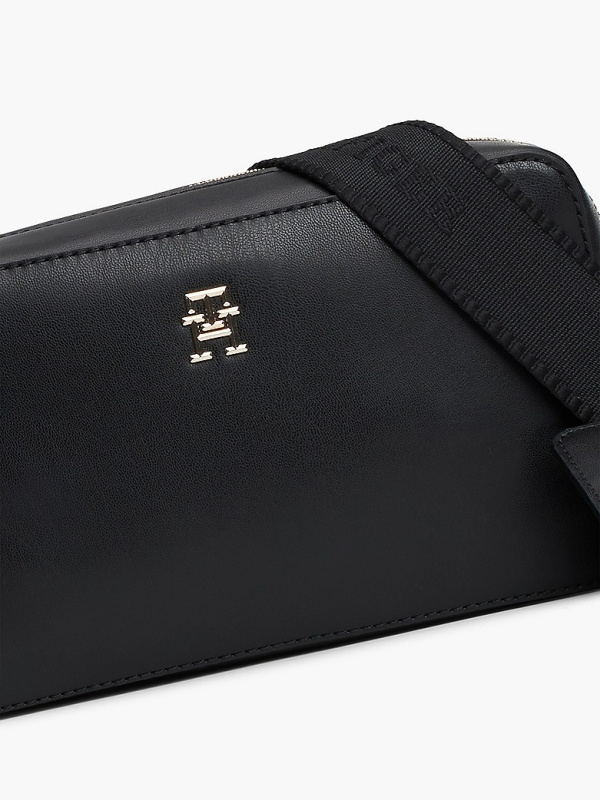 Ova elegantna ležerna torba za fotoaparat spremna je za sve, s diskretnim natpisom na remenu i poliranom pločicom s monogramom TH