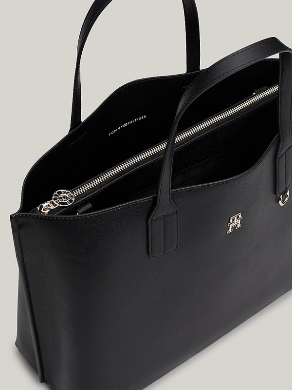 Ova elegantna torbica s plaketom s monogramom TH opremljena je uklonjivim križnim remenom i nekoliko prostranih pretinaca, savršenih za organiziranje stvari.
