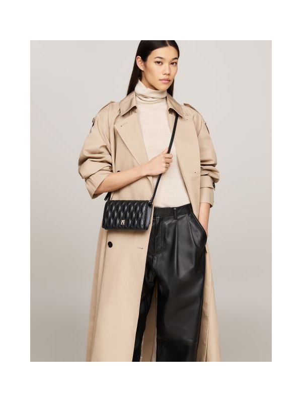 Ženska crna Tommy Hilfiger torba s prošivenim diamond uzorkom
