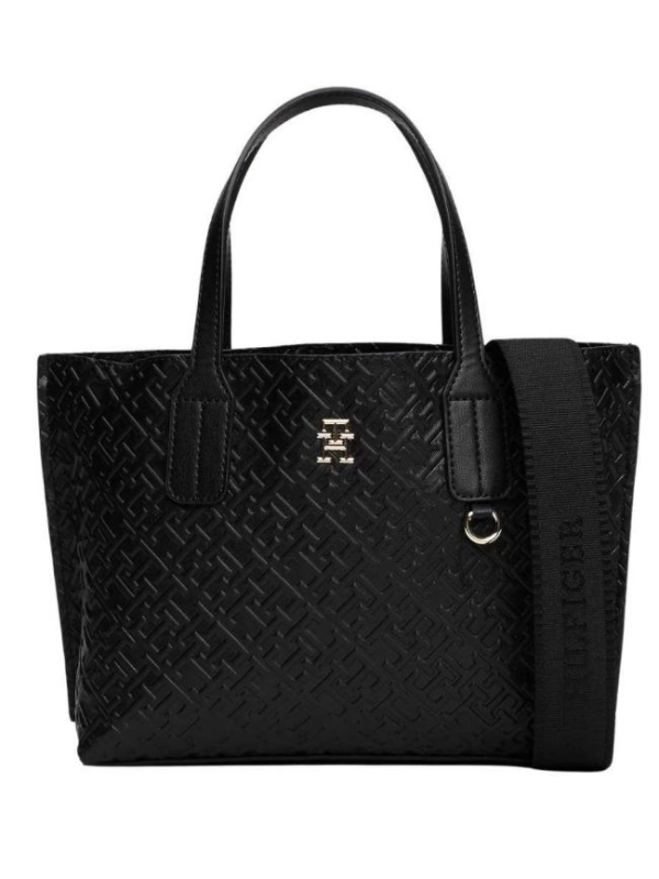 Ženska crna Tommy Hilfiger torba s all-over utisnutim monogramom