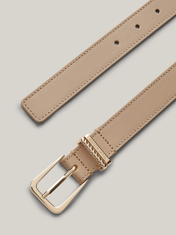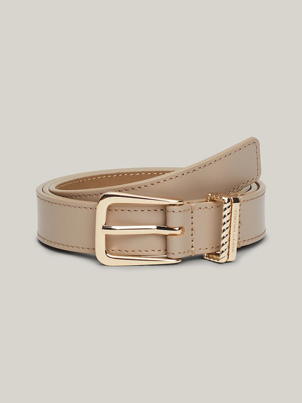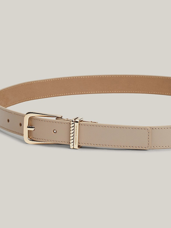Ženski dvostruki kožni bež Tommy Hilfiger remen sa zaobljenom kopčom