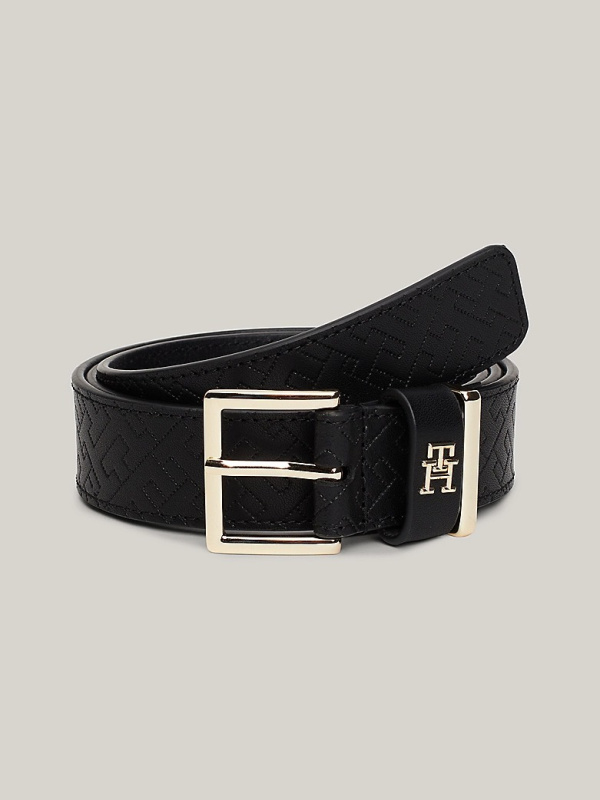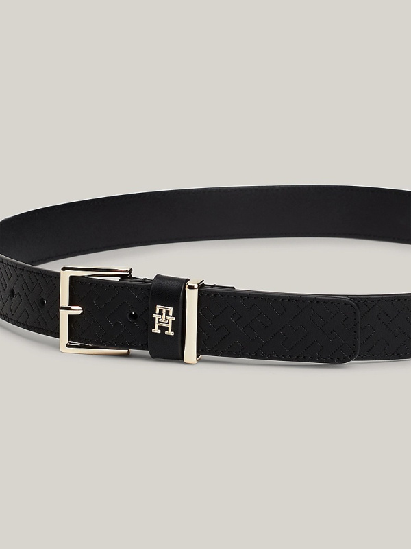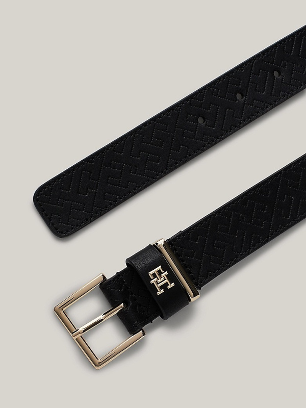 Metalni okovi i dizajn monograma TH u kombinaciji s četvrtastom kopčom daju ovom kožnom remenu raskošan izgled.