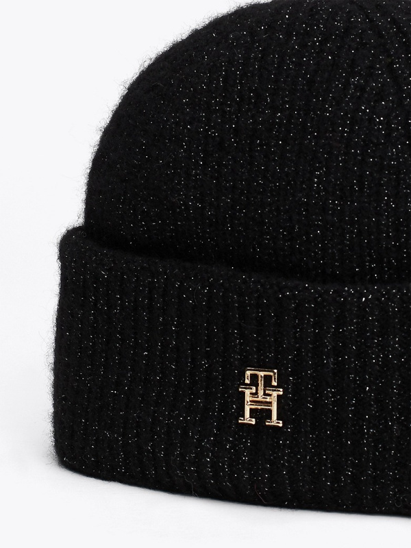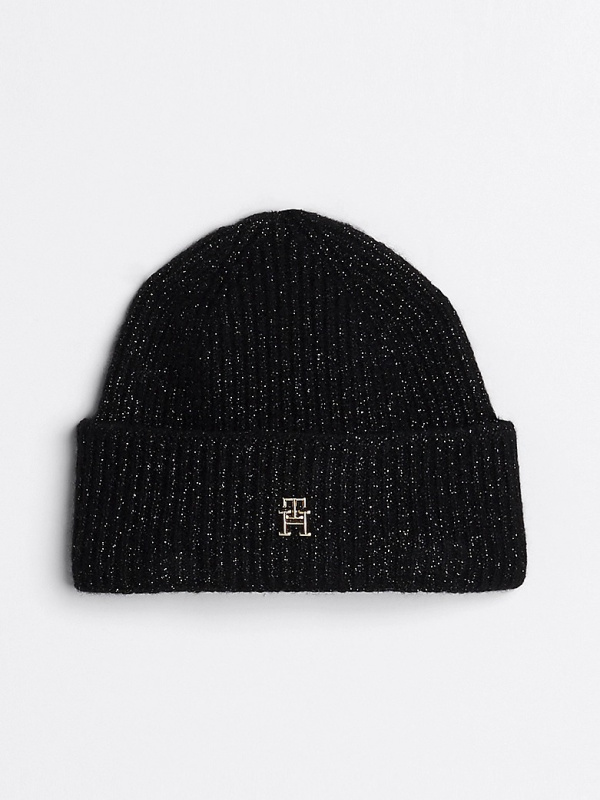 Ženska crna Tommy Hilfiger vunena kapa s monogramom