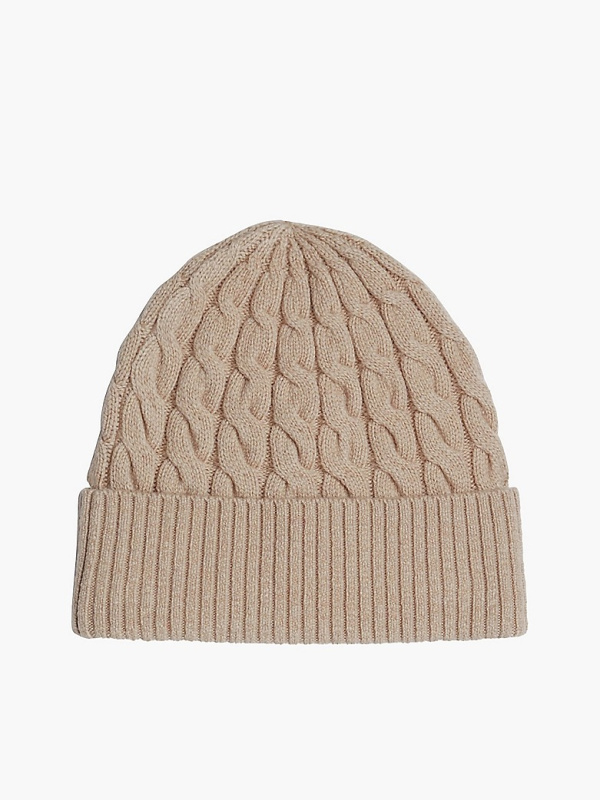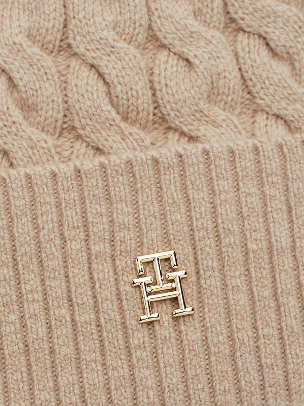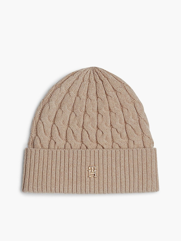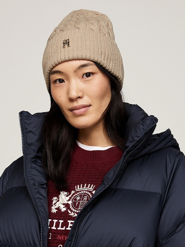 Ženska Tommy Hilfiger bež beanie kapa s logom