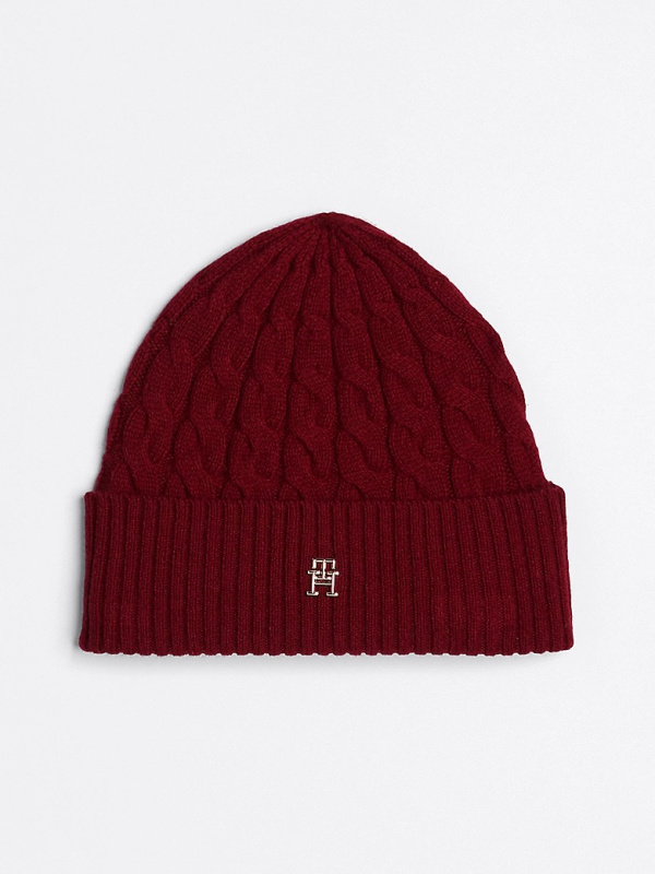 Ženska tamnocrvena Tommy Hilfiger beanie kapa s logom