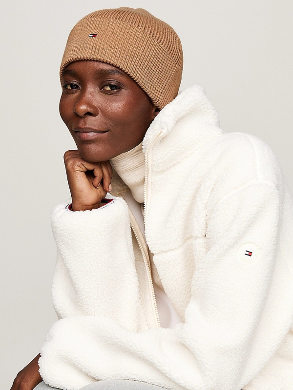 Ženska smeđa Tommy Hilfiger beanie kapa s logom
