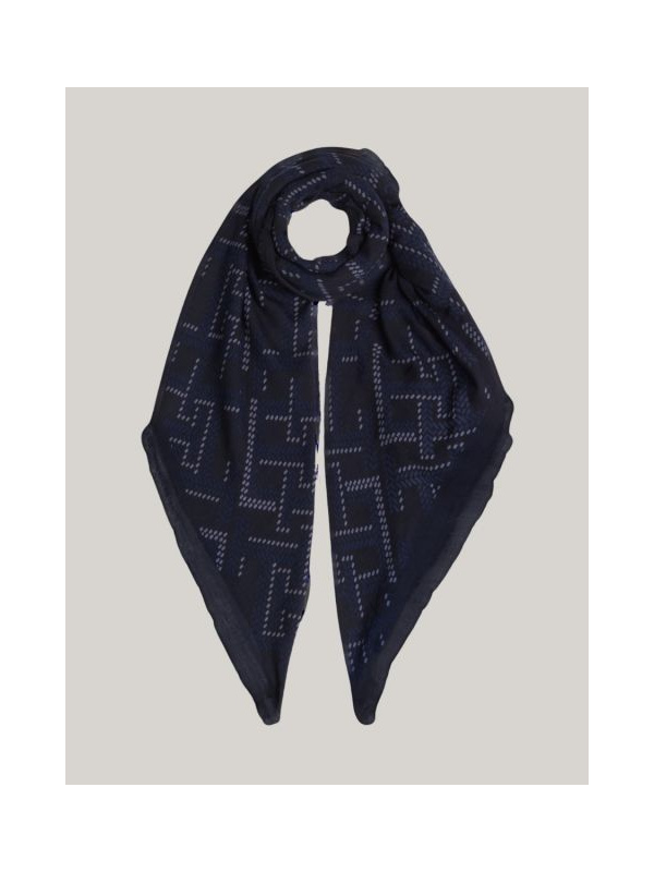 Ženski tamnoplavi Tommy Hilfiger kvadratni šal s monogramom