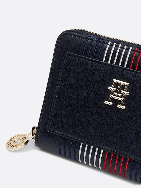 Pohranite svoje osnovne stvari u prepoznatljivom stilu s ovim elegantnim novčanikom, ukrašenim prepoznatljivim šavovima i pločicom s monogramom TH.
