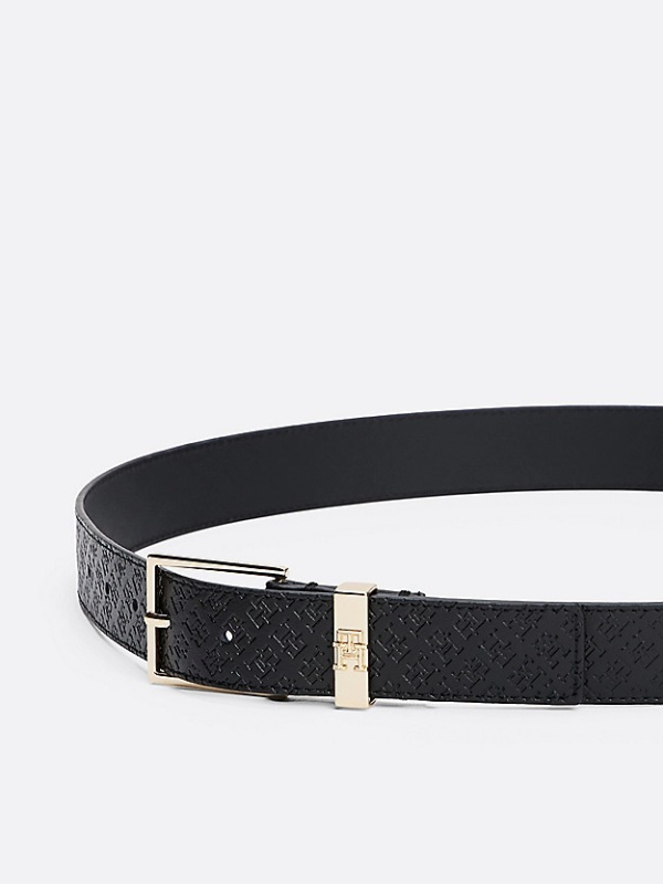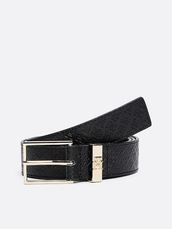 Ženski crni Tommy Hilfiger kožni remen s all-over utisnutim monogramom