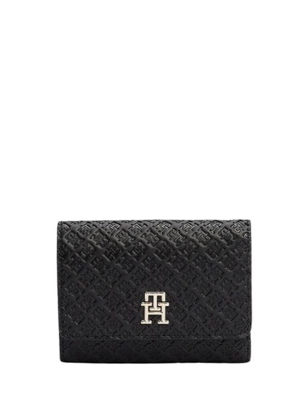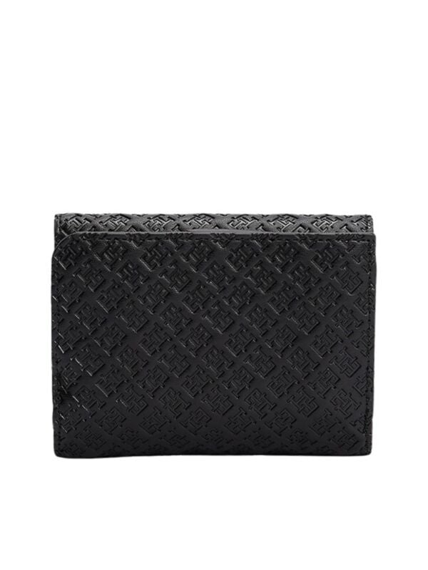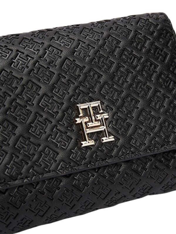 Ženski crni Tommy Hilfiger novčanik s reljefnim teksturiranim all-over monogramom i logom