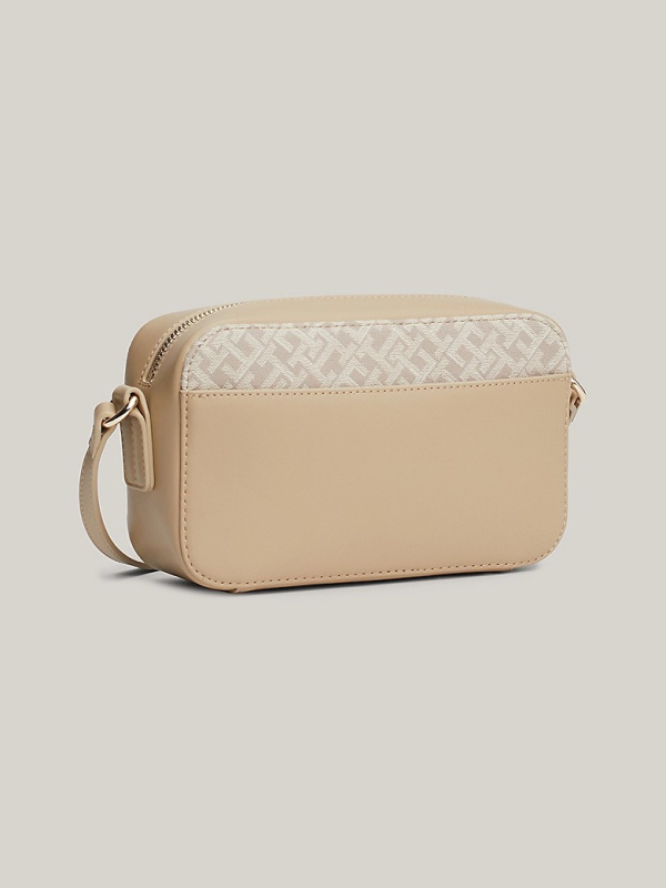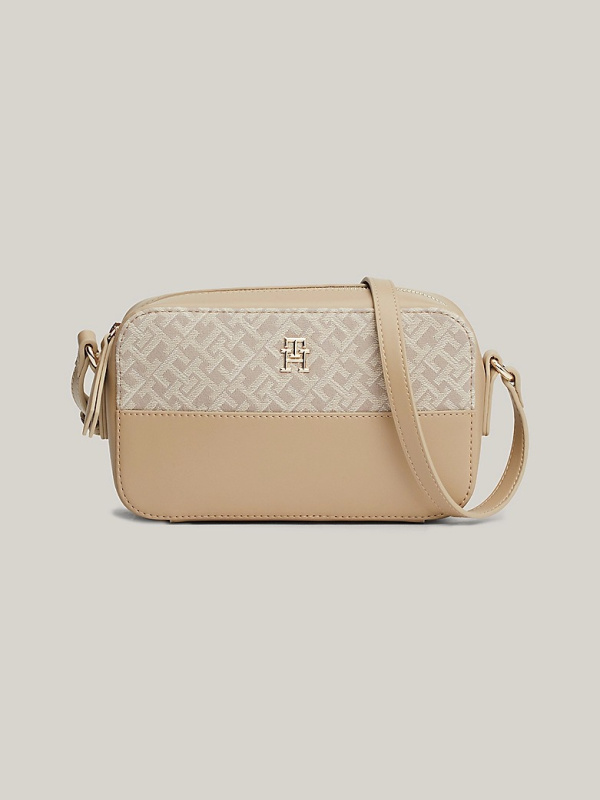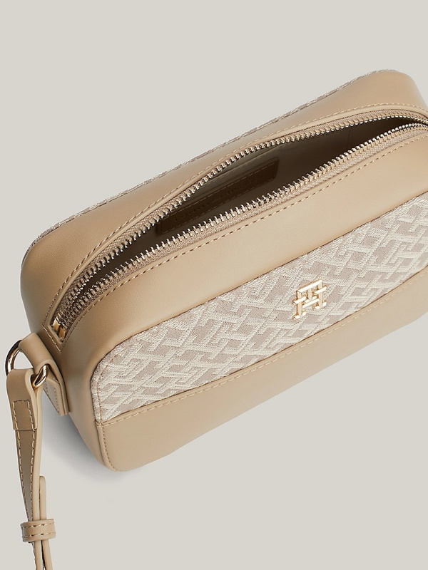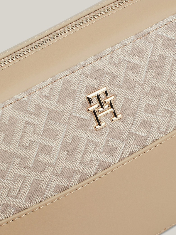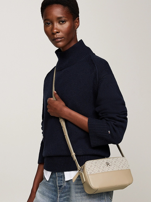 Ova kompaktna torba za fotoaparat kombinira šik stil s razigranim štihom, zahvaljujući TH monogram jacquard dizajnu i svjetlucavom hardveru.