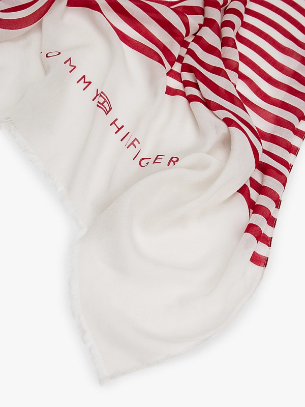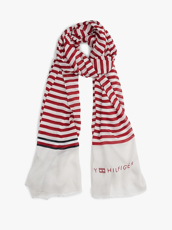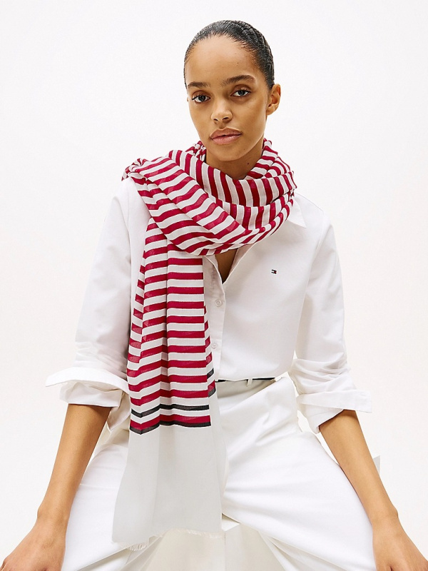 Ženski Tommy Hilfiger šal na pruge u kombinaciji crvene i bijele boje
