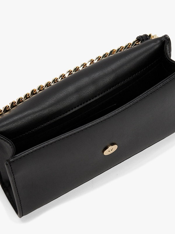 Izađite bezbrižnom sofisticiranošću s ovom torbom preko tijela, koja ima urednu, strukturiranu siluetu, debeli zlatni remen s lancem i odgovarajući brending s elementima tradicije.