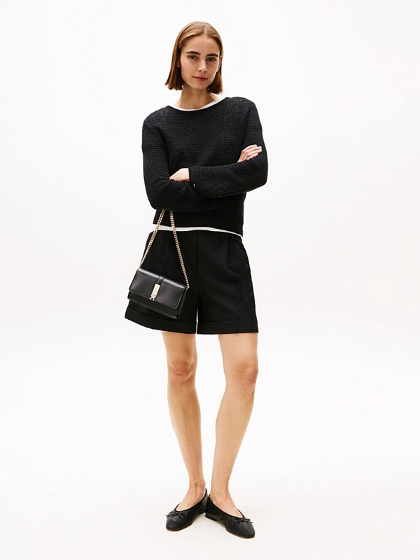 Ženska crna Tommy Hilfiger crossbody torba na preklop