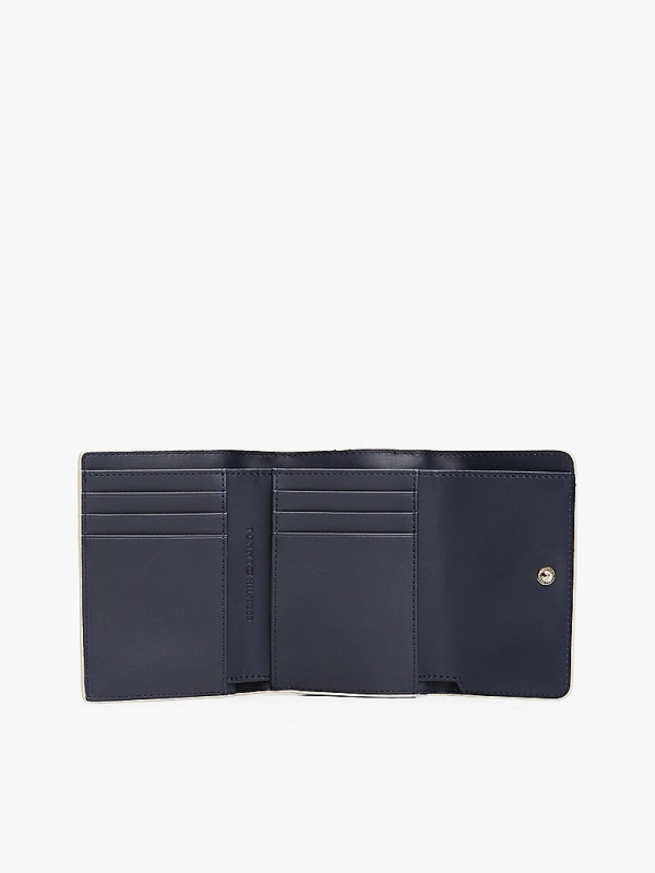 Nadogradite svoje dodatke ovim trostrukim novčanikom koji nudi razne mogućnosti pohrane okružene luksuznim vanjskim završetkom s reljefnim TH monogramom.