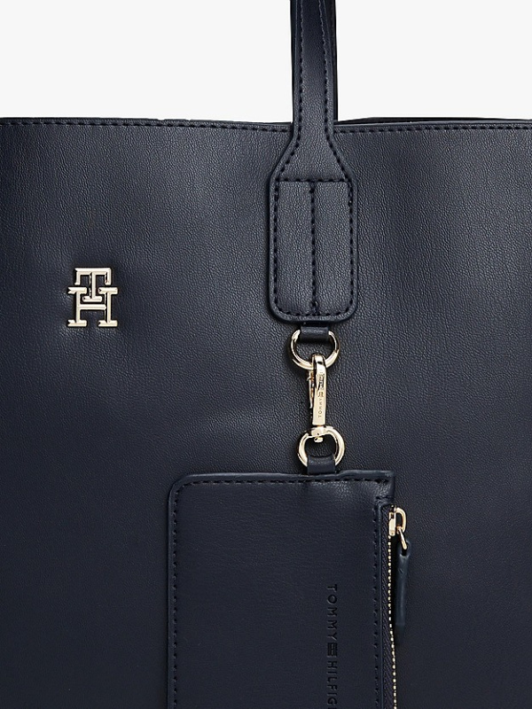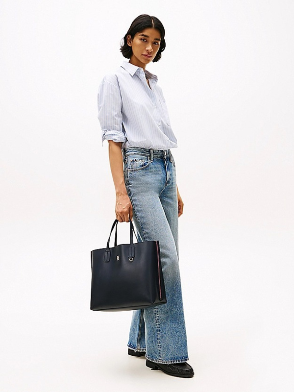 Unaprijedite svoje putovanje na posao s ovom elegantnom i praktičnom torbom ukrašenom TH monogramom, koja nudi prostranu unutrašnjost i odvojivu torbicu za novčiće.