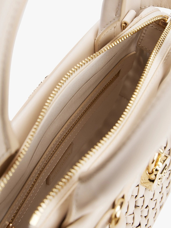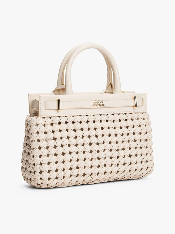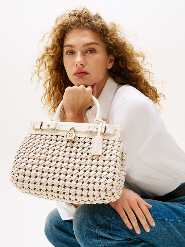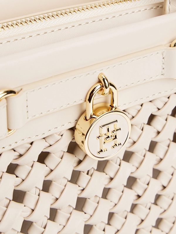 Ova elegantna torba s odvojivim remenom za nošenje spaja uzvišene detalje monograma TH i dizajn tkane kože.
