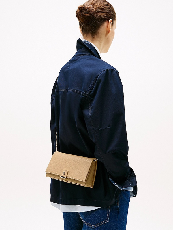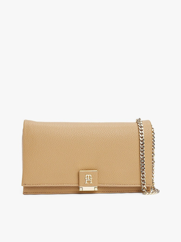 Ova kompaktna torba za preko ramena ističe se svojim svjetlucavim lančanim remenom i pločicom monograma TH na prednjoj strani.