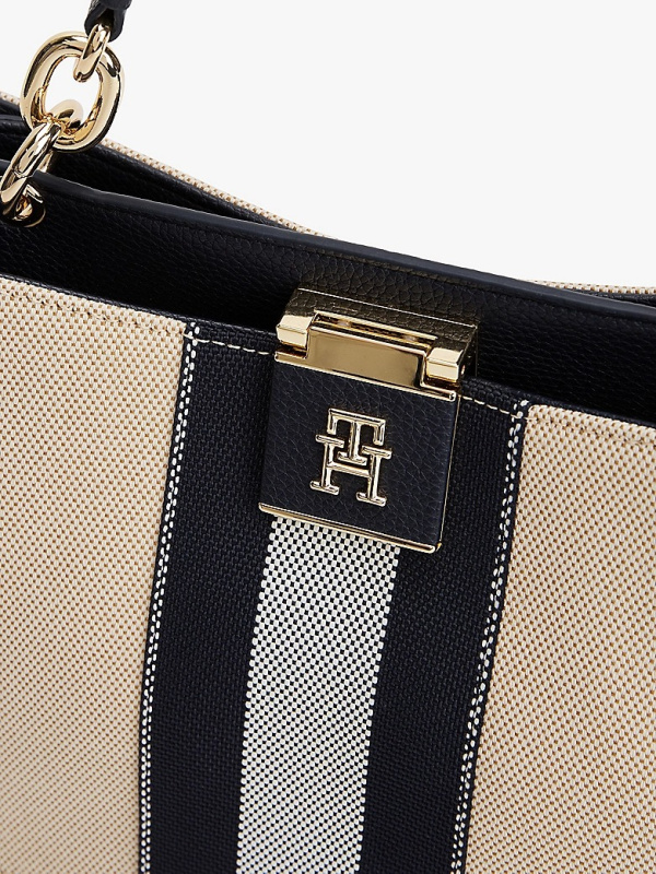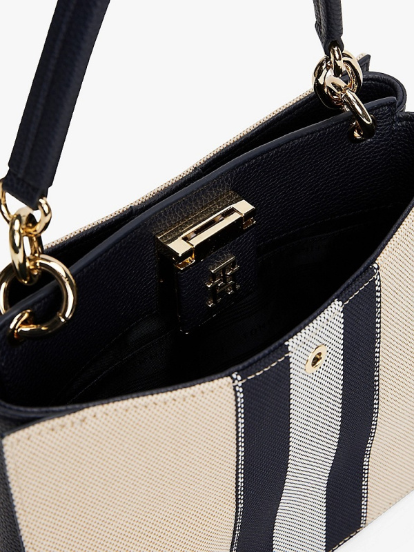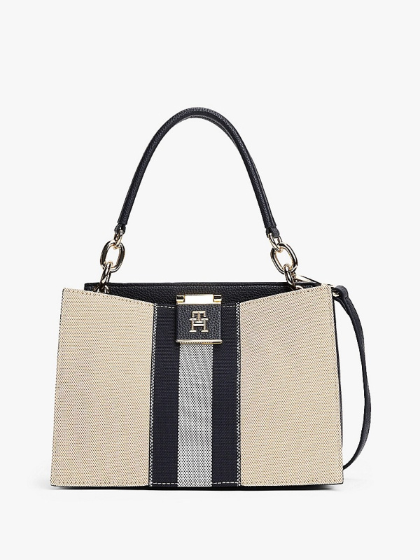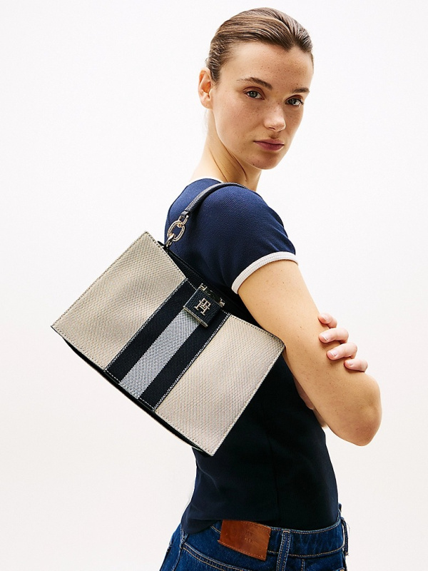 Ženska Tommy Hilfiger Canvas Stripe crossbody tote torba u kombinaciji tamnoplave i prljavobijele boje
