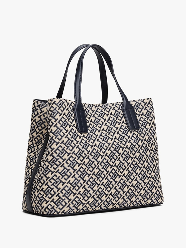 Ženska Tommy Hilfiger torba u kombinaciji tamnoplave i krem-bijele boje s all-over monogramom