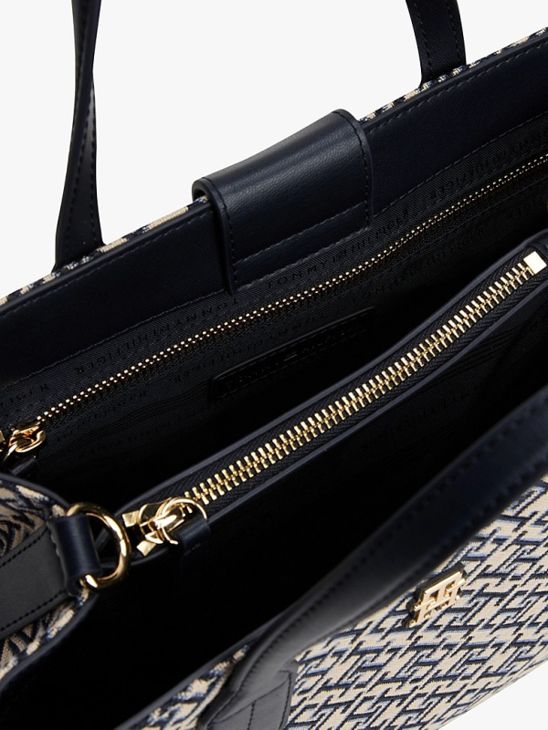Ova moderna torba izrađena je od privlačne žakard tkanine s monogramom TH, s blistavom pločicom koja upotpunjuje izgled.