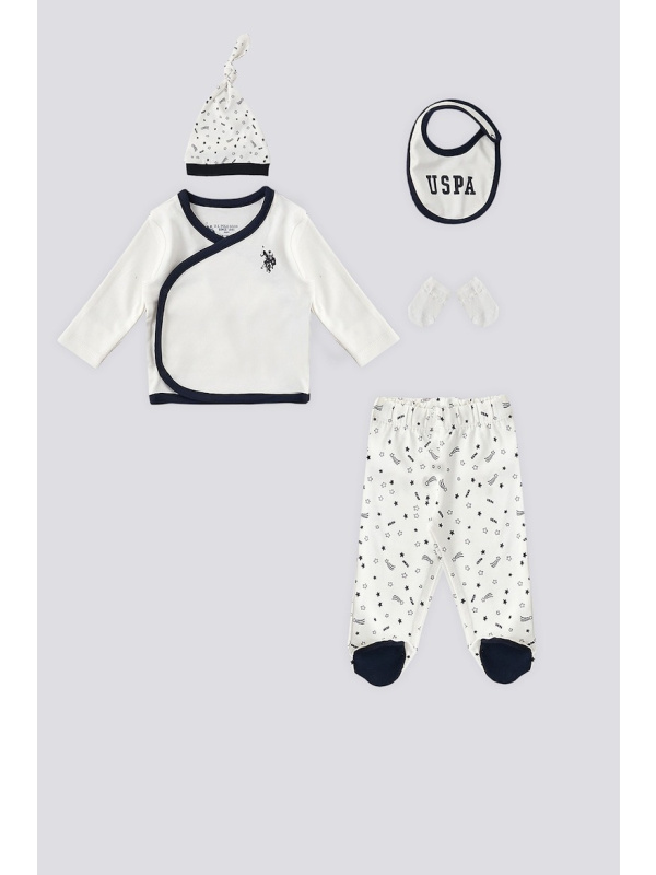 Komplet U.S. POLO ASSN. za bebe u krem bijeloj boji sam tamnoplavim detaljima