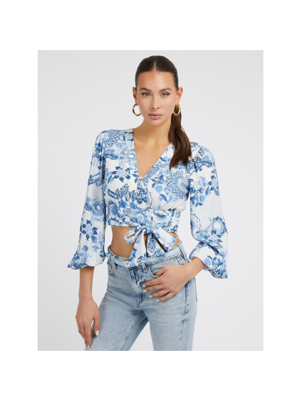 Ženska plava GUESS Gisel bluza od miješane viskoze