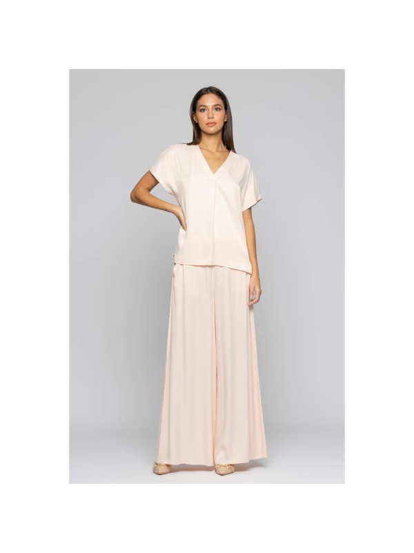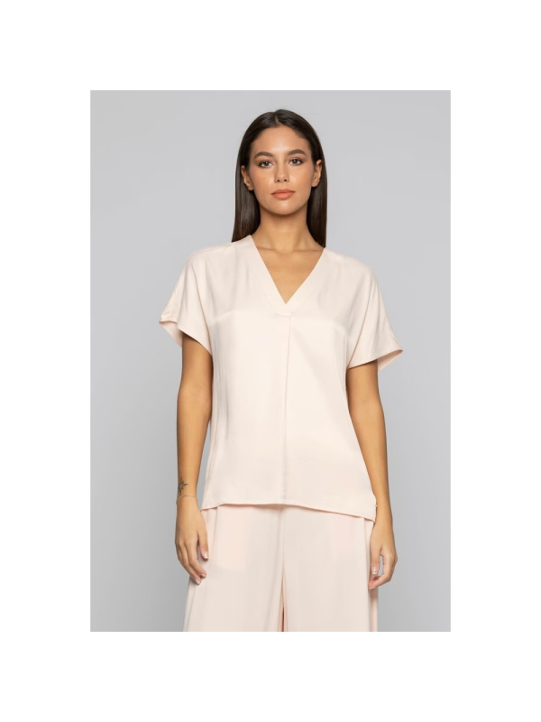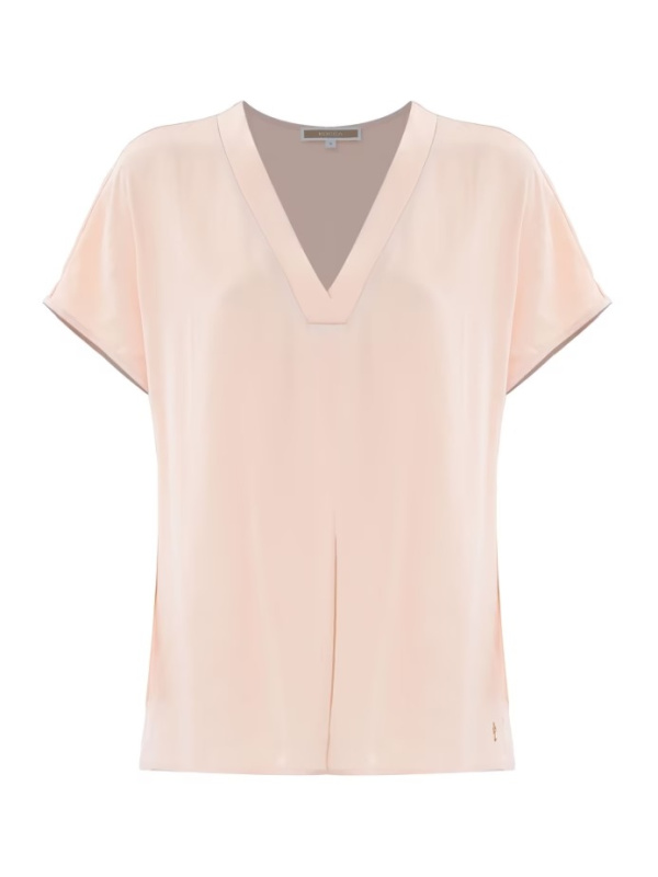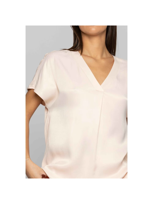 Ova minimalistička KOCCA bluza od viskoze s v-izrezom dovršena je kratkim rukavima i naborom sprijeda.