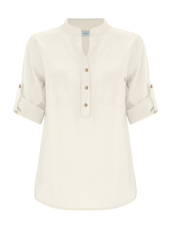 Dio kolekcije Better Natural Capsule, ova mekana pamučna bluza ima lagani dekolte, kontrastne gumbe i zavrnute rukave.